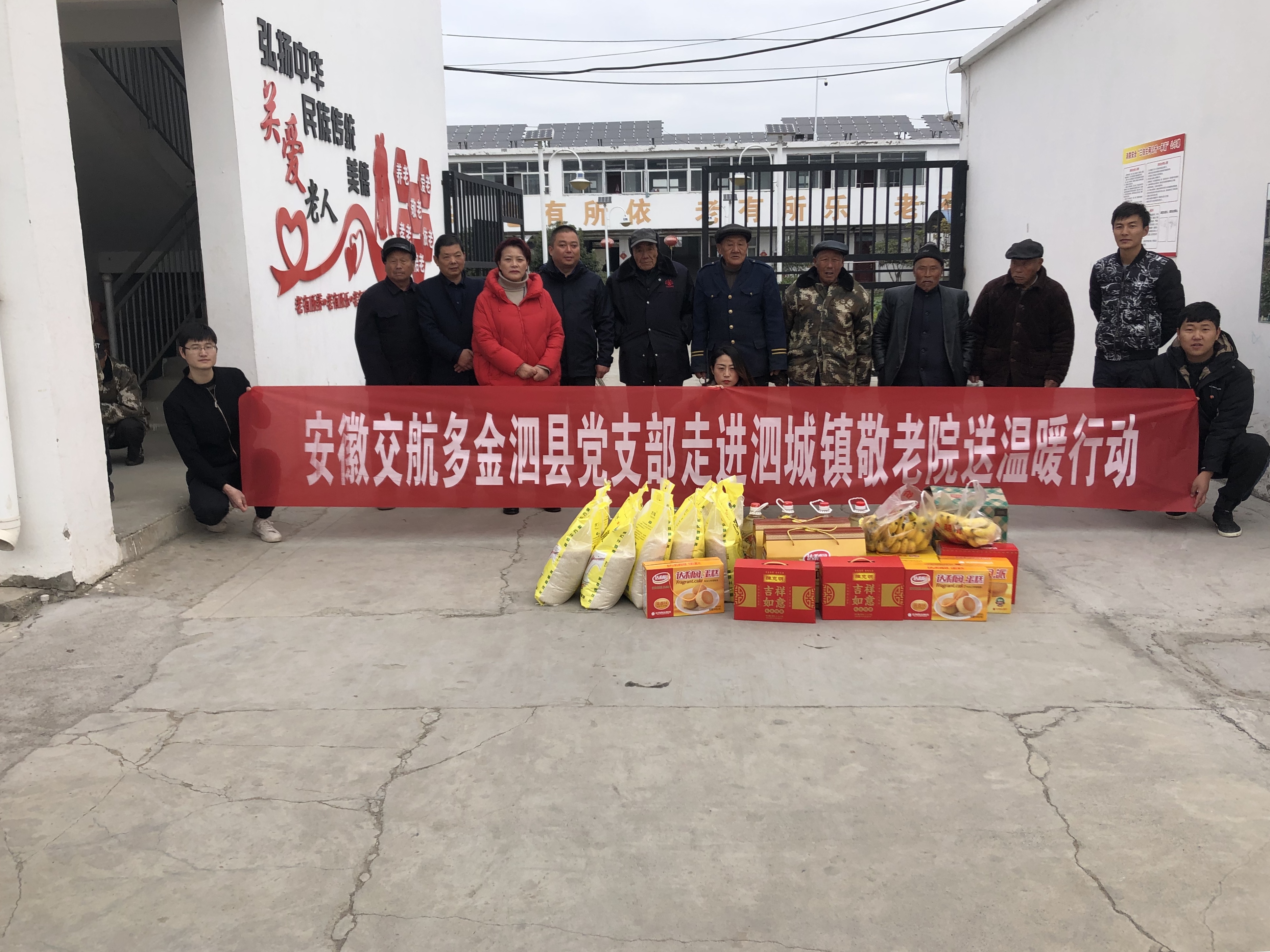 2019年11月26日,安徽交航多金泗縣項(xiàng)目黨支部組織開(kāi)展了“冬日送溫暖”走進(jìn)泗城鎮(zhèn)敬老院主題黨日活動(dòng),給敬老院的老人們送去一份關(guān)愛(ài)和溫暖。