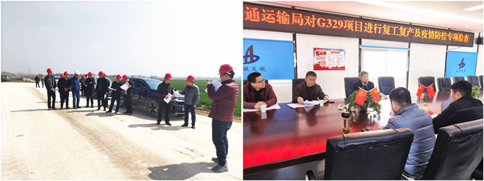 3月4日上午,亳州市交通運輸局建管科科長袁偉一行,到安徽交航G329項目開展節(jié)后復工復產(chǎn)及疫情防控情況專項檢查。三公司經(jīng)理潘家奎及項目管理人員參加檢查。