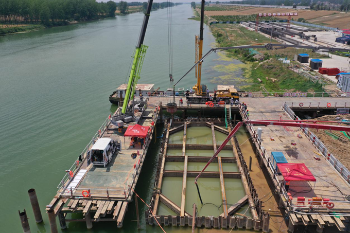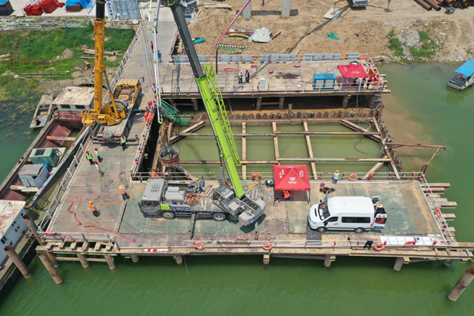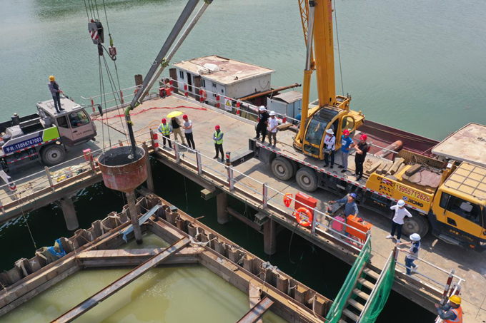 5月21日,利辛縣S247馬胡橋項(xiàng)目完成4#主墩鋼圍堰封底,標(biāo)志著馬胡橋主橋建設(shè)將由水下轉(zhuǎn)向水上施工,下一步工作重點(diǎn)轉(zhuǎn)向承臺(tái)和門(mén)型實(shí)體墩身施工。