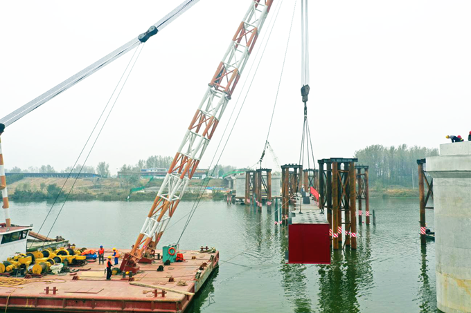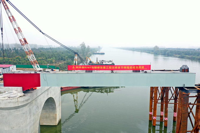 10月28日下午4點(diǎn)10分,隨著一節(jié)重達(dá)53噸的鋼箱梁穩(wěn)穩(wěn)地架設(shè)到馬胡橋4#主墩支座位置上,利辛S247馬胡橋項(xiàng)目首節(jié)鋼箱梁架設(shè)宣告成功,標(biāo)志著馬胡橋進(jìn)入鋼箱梁“拼積木”階段,主橋上部結(jié)構(gòu)施工將進(jìn)入“快車道”。