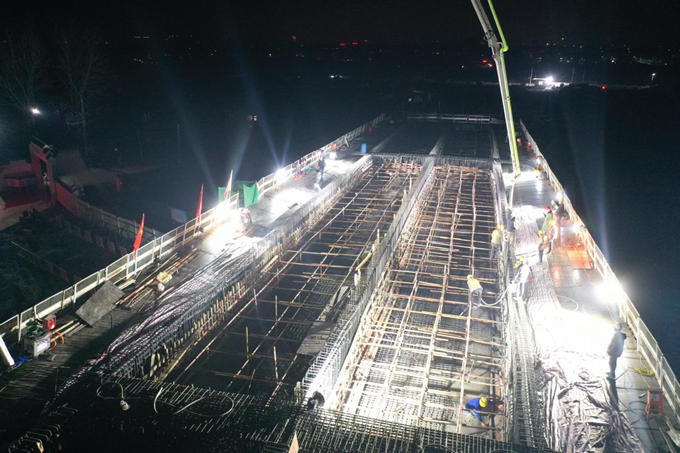 在澆筑施工的19個小時里,項目全體職工充分發(fā)揚(yáng)“學(xué)黨史、保安康、搶工期、爭一流”的勞動競賽精神和“不怕苦、不懼難、敢拼搏、愿奉獻(xiàn)”的團(tuán)隊精神,統(tǒng)籌協(xié)調(diào)、頑強(qiáng)拼搏,為施工順利完成提供了有力保障。此次施工完成也標(biāo)志著邵渡口大橋建設(shè)進(jìn)入嶄新階段,為項目如期竣工通車打下了堅實基礎(chǔ)。
