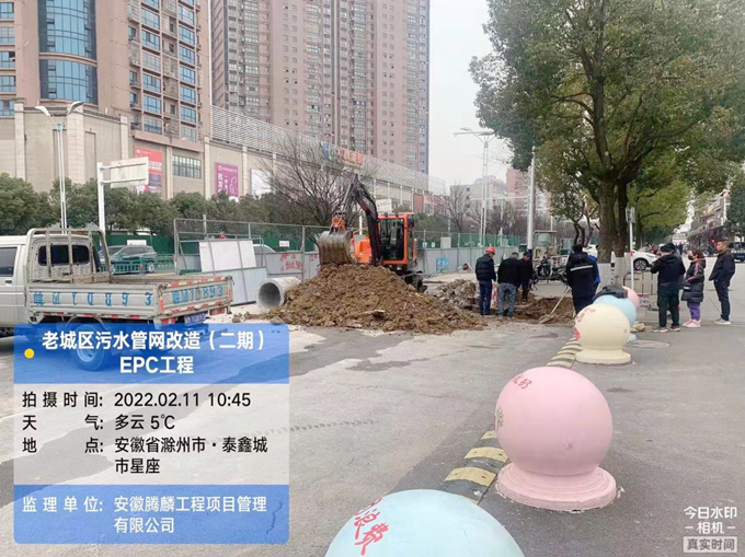 2月11日,老城區(qū)污水管網(wǎng)改造項目正在進行清流路和南譙路微頂管和支管接入施工