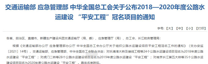 “平安工程”冠名活動(dòng)由交通運(yùn)輸部、應(yīng)急管理部、中華全國(guó)總工會(huì)組織評(píng)選,旨在深入推進(jìn)平安工地長(zhǎng)效機(jī)制建設(shè),不斷提升公路水運(yùn)工程建設(shè)安全管理水平,引導(dǎo)和激勵(lì)企業(yè)加強(qiáng)安全生產(chǎn)工作。沱澮河是中部地區(qū)及豫皖兩省規(guī)劃的區(qū)域性重要航道,被列入交通部水運(yùn)交通“十二五”規(guī)劃,沱澮河航道整治工程的建設(shè)對(duì)實(shí)施“一帶一路”和長(zhǎng)江經(jīng)濟(jì)帶戰(zhàn)略,促進(jìn)皖北水運(yùn)事業(yè)和經(jīng)濟(jì)社會(huì)發(fā)展意義重大。