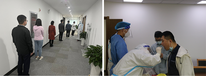 圖為公司機關防疫工作組聯系核酸檢測機構對全員進行核酸檢測。