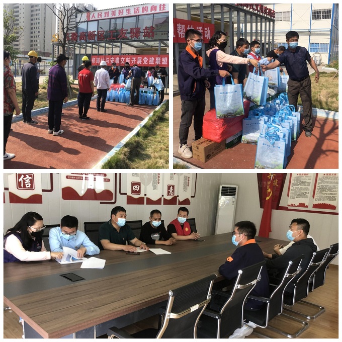 活動中,雙方就黨建聯(lián)盟活動后期工作開展進行了深入交流,并表示將充分利用黨建工作共建平臺,共同探索基層黨建的新思路、新舉措,實現(xiàn)黨建聯(lián)盟共促發(fā)展的目標(biāo)。隨后,滁州項目黨支部聯(lián)合鄭郢社區(qū)黨支部為項目一線工人們送去了毛巾、香皂、礦泉水等慰問品,為在高溫酷暑下仍奮戰(zhàn)在項目一線的工人們送上溫情關(guān)懷。
