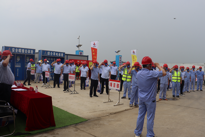 公司安委會(huì)成員、項(xiàng)目管理人員、勞務(wù)班組作業(yè)人員代表以及參賽隊(duì)員等參加儀式。
