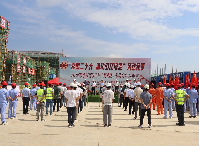 7月7日上午,由安徽省引江濟(jì)淮集團(tuán)有限公司工會(huì)主辦,省引江濟(jì)淮集團(tuán)肥西建管處、安徽省交通航務(wù)工程有限公司承辦的“喜迎二十大 建功引江濟(jì)淮”2022年引江濟(jì)淮工程(肥西段)勞動(dòng)競(jìng)賽啟動(dòng)儀式在我公司引江濟(jì)淮工程派河口服務(wù)區(qū)項(xiàng)目成功舉行。公司黨委副書記、總經(jīng)理杜海峰出席儀式并致辭。省引江濟(jì)淮集團(tuán)運(yùn)營(yíng)管理部部長(zhǎng)陳敏,肥西建管處處長(zhǎng)陳曦、副處長(zhǎng)李峰,安徽交航黨委副書記、工會(huì)主席黃國(guó)平出席儀式,各參建單位項(xiàng)目代表和一線隊(duì)伍代表參加儀式。肥西建管處副處長(zhǎng)宋誠(chéng)主持儀式。