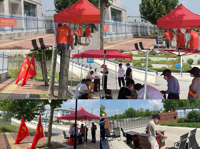 泗縣疫情發(fā)生后,計劃開展多輪集中核酸檢測活動。為打贏這場突發(fā)疫情防控戰(zhàn),在戰(zhàn)“疫”大考中切實履行國有企業(yè)社會責(zé)任,發(fā)揚國有企業(yè)使命擔(dān)當(dāng),項目黨支部積極組織青年黨員志愿者參與核酸檢測志愿服務(wù)活動。支部積極主動提供桌椅、遮陽棚、防暑降溫用品等,在各個檢測點維持秩序,引導(dǎo)群眾按規(guī)定要求排隊檢測,并積極配合進行核酸檢測?;顒咏Y(jié)束,項目安全員仔細在活動現(xiàn)場做好防疫消殺工作,不留一絲死角。
