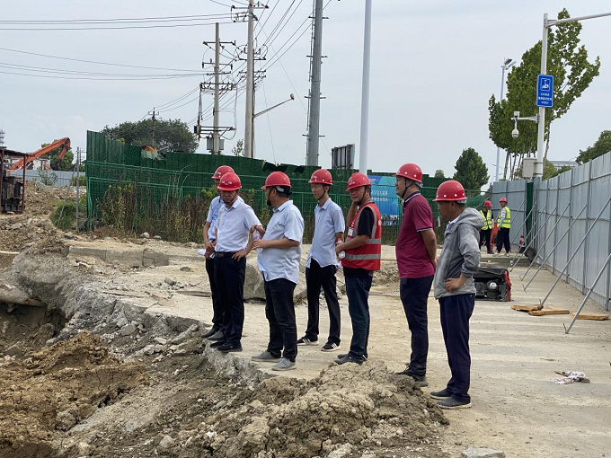 杜海峰一行首先來到項目施工現(xiàn)場,聽取了關(guān)于現(xiàn)場施工形象進度、節(jié)點目標完成情況的匯報,對項目建設(shè)總體進展表示肯定。隨后,杜海峰主持召開項目生產(chǎn)調(diào)度會,他強調(diào),四水廠項目是合肥市包河區(qū)一項重大民生工程,項目部要牢固樹立履約意識,搶抓進度,優(yōu)質(zhì)高效推進項目建設(shè),切實保障居民用水安全。一要進一步明確“7.31”勾點并網(wǎng)通水施工節(jié)點目標,根據(jù)節(jié)點目標倒排剩余工期,施工任務(wù)細化分解至每天,全力保證人材機投入,落實落細各項施工保障措施,保證節(jié)點目標得以順利實現(xiàn)。二要做好搶工期間現(xiàn)場安全文明施工,嚴格落實高溫天氣防暑降溫措施,合理安排作業(yè)時間,做好安全保障工作。三要嚴格落實疫情防控常態(tài)化管控措施,根據(jù)屬地政府各項防疫要求,加強進出場人員管控。四要積極對接上級主管部門,協(xié)調(diào)各參建方,尤其項目沿線各管理單位,為項目順利完工創(chuàng)造良好的外部環(huán)境。