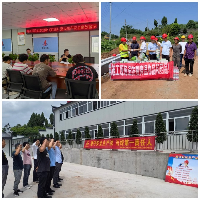 加強(qiáng)安全管理,增強(qiáng)安全意識(shí)。項(xiàng)目部全面落實(shí)安全生產(chǎn)責(zé)任制度,嚴(yán)格實(shí)行領(lǐng)導(dǎo)帶班制度,加強(qiáng)生產(chǎn)過(guò)程中安全隱患排查工作,截至目前項(xiàng)目未發(fā)生安全事故。依據(jù)項(xiàng)目制定的安全檢查制度,開(kāi)展了日常巡查、定期檢查、專項(xiàng)巡查、節(jié)前專項(xiàng)檢查及節(jié)后復(fù)工專項(xiàng)檢查等。今年以來(lái)項(xiàng)目部累計(jì)開(kāi)展安全進(jìn)場(chǎng)教育145人次;安全技術(shù)交底25次;共下發(fā)37份安全隱患整改通知單,完成86條安全隱患的整改工作;開(kāi)展“安全警示日”、“安全生產(chǎn)月”、“防災(zāi)減災(zāi)”等專題教育以及系列活動(dòng)。項(xiàng)目部調(diào)整施工時(shí)間錯(cuò)開(kāi)高溫時(shí)間段,在施工現(xiàn)場(chǎng)配備綠豆、防暑降溫藥品,采取一系列措施預(yù)防工人中暑,有效應(yīng)對(duì)夏季高溫天氣。