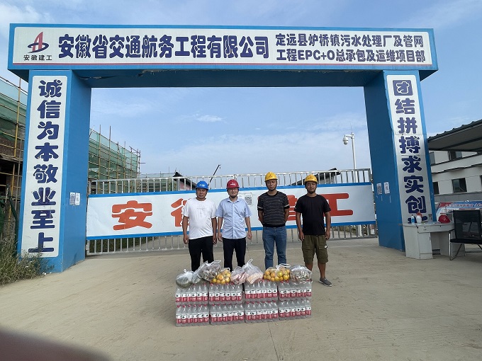 近日,定遠(yuǎn)縣爐橋鎮(zhèn)污水處理廠及管網(wǎng)工程EPC+O總承包及運(yùn)維項(xiàng)目部組織開展了“慰問暖人心”活動(dòng),為奮戰(zhàn)在施工一線的農(nóng)民工兄弟們送上暖心關(guān)懷。