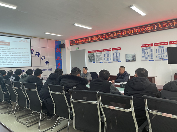 12月30日下午,公司黨委副書記、工會主席黃國平赴泗縣長三角項目部宣講黨的十九屆六中全會精神。泗縣長三角項目全體職工參加會議。