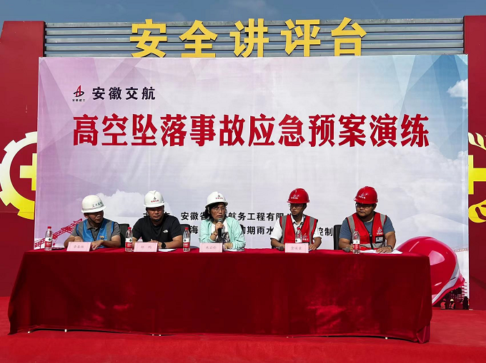 近期安徽省高墜事故頻發(fā),為了更好的學(xué)習(xí)貫徹“9.23省安委會全體會議”會議精神,提高廣大員工安全意識,普及應(yīng)急救援知識。9月29日下午,安徽交航公司在合肥市瑤海區(qū)板橋河項目部開展高空墜落應(yīng)急預(yù)案演練活動。公司安全環(huán)保監(jiān)察部、監(jiān)理單位、在肥項目部管理人員及施工班組人員參加活動。演練由項目經(jīng)理金遙童主持。