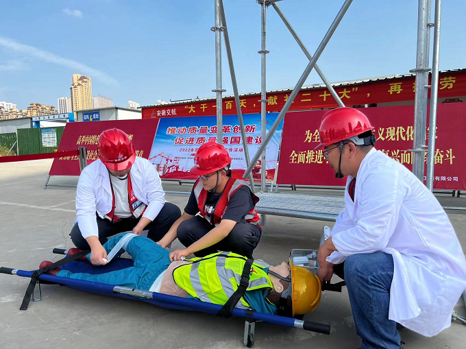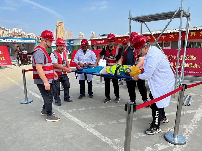 下午3時許,模擬演練調(diào)蓄池腳手架拆除施工時發(fā)生高空墜落事故,項目部立即啟動《高空墜落事故應(yīng)急預(yù)案》。保衛(wèi)小組拉警戒帶進行隔離,指揮交通保證救援通道暢通。救援小組在確保自身安全的情況下?lián)岆U救援。救護車達到事故現(xiàn)場后,救援小組配合醫(yī)生將傷者移至救護車,并指定人員隨車前往醫(yī)院。事故調(diào)查組將事故原因初步調(diào)查結(jié)果向項目經(jīng)理匯報,后續(xù)對事故責任做出書面匯報。