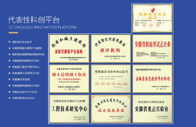 產(chǎn)學(xué)研合作和科技創(chuàng)新平臺(tái)數(shù)量實(shí)現(xiàn)新突破。加強(qiáng)與高校之間的產(chǎn)學(xué)研合作,建立產(chǎn)學(xué)研深度融合的技術(shù)創(chuàng)新體系,合作模式不斷創(chuàng)新。先后與合肥工業(yè)大學(xué)、安徽建筑大學(xué)、安徽理工大學(xué)等單位建立產(chǎn)學(xué)研合作平臺(tái),搭建了安徽省產(chǎn)學(xué)研聯(lián)合培養(yǎng)研究生示范基地。以項(xiàng)目研究為紐帶,大力推進(jìn)科技創(chuàng)新平臺(tái)建設(shè),激發(fā)創(chuàng)新活力。先后建設(shè)了以中國合格評(píng)定國家認(rèn)可委員會(huì)認(rèn)可實(shí)驗(yàn)室(CNAS認(rèn)可)、國家級(jí)高新技術(shù)企業(yè)、安徽省綠色建材評(píng)價(jià)機(jī)構(gòu)、綠色建筑與裝配式建造安徽省重點(diǎn)實(shí)驗(yàn)室、安徽省企業(yè)技術(shù)中心、安徽省博士后科研工作站為代表的11個(gè)科研創(chuàng)新平臺(tái)。截至“十三五”末,安徽建科共有各類科技創(chuàng)新平臺(tái)17個(gè)。