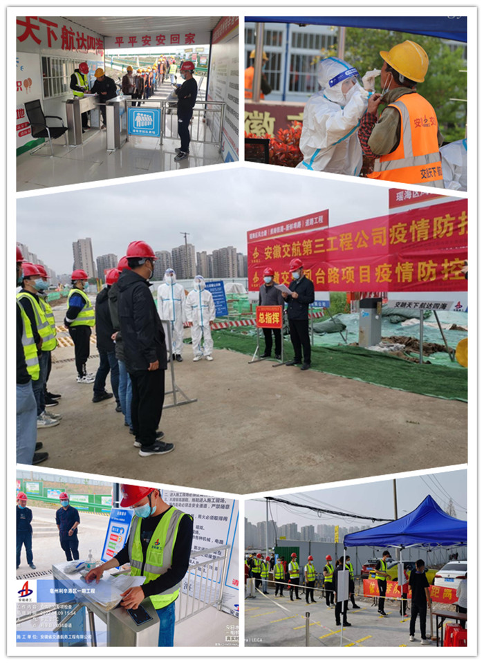 “請大家戴好口罩有序排隊(duì),前后人員保持一米距離?!薄澳?,出示您的安康碼和行程卡,并接受體溫檢測?!比涨?,利辛縣邵渡口大橋項(xiàng)目部聯(lián)合邵渡口村委會,集中組織28名管理人員及120名勞務(wù)班組作業(yè)人員依次進(jìn)行核酸檢測、體溫測量和信息登記。二公司、三公司、亳州利辛港區(qū)項(xiàng)目部、滁州項(xiàng)目部等基層單位及時(shí)召開專題會議,按照公司黨委要求,積極落實(shí)疫情防控措施、制定抗疫方案,對工作人員進(jìn)行常態(tài)化體溫檢測、定期核酸檢測、兩碼聯(lián)查登記、人員進(jìn)出管控,并積極加強(qiáng)防疫宣傳、定期消殺及物資儲備……多措并舉阻斷疫情擴(kuò)散,確保疫情防控措施落實(shí)到位,強(qiáng)化疫情源頭防控。