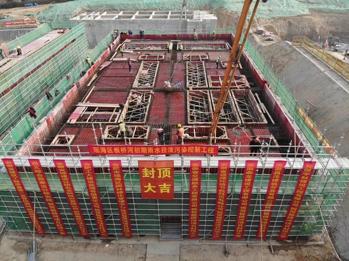 1月3日下午,瑤海區(qū)板橋河初期雨水徑流污染控制工程項目主體結(jié)構(gòu)順利封頂。