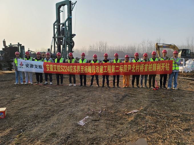 S224皖蘇界至楊疃段改建工程,路線全長47.224公里。安徽交航承建的二標(biāo)段樁號K23+000-K47+224,全長24.224公里。而尹北村橋是本標(biāo)段10座橋梁中跨度最大的橋,全長527.5m。自進(jìn)場以來,項目全體員工始終秉承“誠信為本,敬業(yè)至上”的企業(yè)核心價值觀,腳踏實地、穩(wěn)扎穩(wěn)打、步步為營,此次首根樁基的順利施工開鉆,極大地鼓舞了項目全體參建人員的士氣,為項目全線按時完工和順利通車提供了可靠的保障。