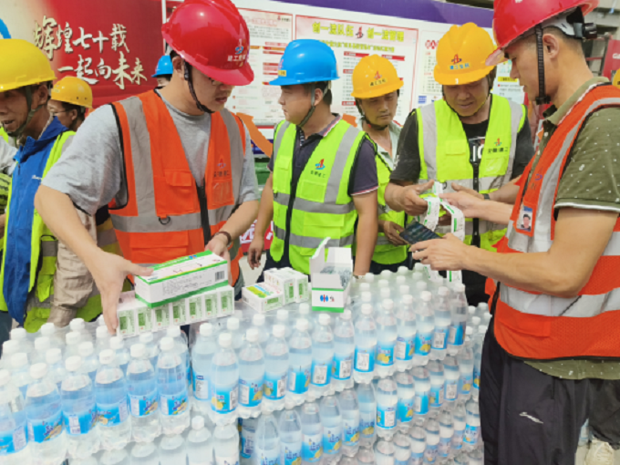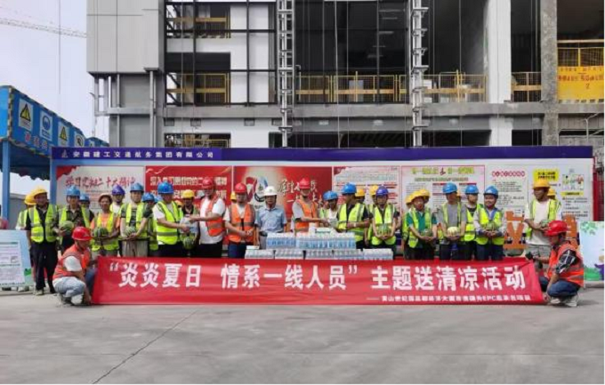 為貫徹落實公司及黃山市住建局有關(guān)安全工作要求,切實做好高溫天氣施工防暑降溫工作。近日,黃山世紀(jì)園總部經(jīng)濟大廈項目部組織開展“炎炎夏日 情系一線人員”送清涼活動,為現(xiàn)場作業(yè)人員發(fā)放毛巾、鹽汽水、風(fēng)油精、清涼油等防暑降溫物資。