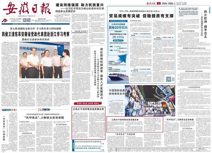 7月14日,安徽日?qǐng)?bào)以《以高水平調(diào)研推動(dòng)高質(zhì)量發(fā)展》為題報(bào)道安徽建工集團(tuán)主題教育開展情況。以下是報(bào)道部分內(nèi)容: