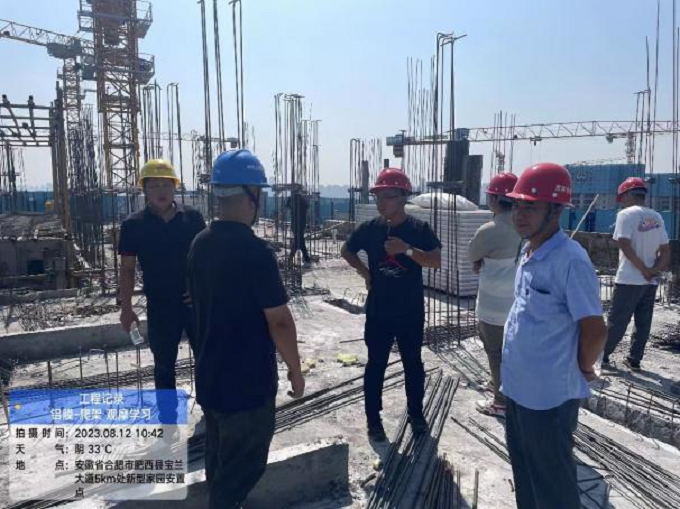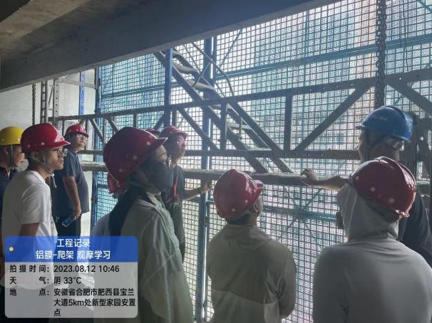 8月12日,項目部組織新員工前往中建五局新型家園項目學(xué)習(xí)鋁模板、爬架等工藝。