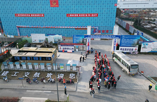 “城東糧食倉儲(chǔ)物流項(xiàng)目在我們黃山學(xué)院建筑工程系很出名,今天真的來到了現(xiàn)場,很激動(dòng)”,參觀過程中,師生時(shí)不時(shí)交流著,“一直聽講黃山這邊有一個(gè)工地,干凈整潔,文藝十足,還獲得了黃山市第一批“最干凈工地 ”,沒想到今天真的能來現(xiàn)場感受一下”,“感覺這是一個(gè)文藝十足的項(xiàng)目,與心目中的項(xiàng)目一點(diǎn)都不一樣,皖風(fēng)流轉(zhuǎn),典雅古樸……”首先映入師生眼簾的是項(xiàng)目駐地門口的假山流水、網(wǎng)紅打卡臺(tái)“想你的風(fēng)吹到了建工交航”,讓00后的學(xué)生們眼前一亮。