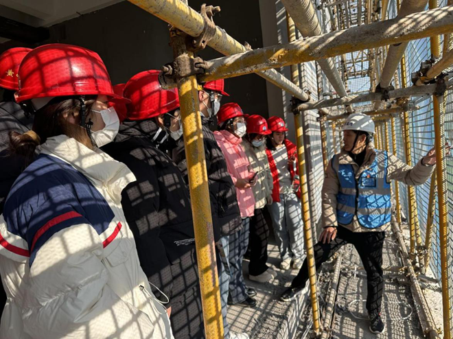 12月23日上午,黃山學(xué)院建筑工程學(xué)院2021級(jí)、2023級(jí)工程造價(jià)專業(yè)師生走進(jìn)建工交航黃山分公司城東糧食倉儲(chǔ)物流項(xiàng)目實(shí)地觀摩學(xué)習(xí),提前走出校門,親身感受徽風(fēng)皖韻中的項(xiàng)目風(fēng)采。