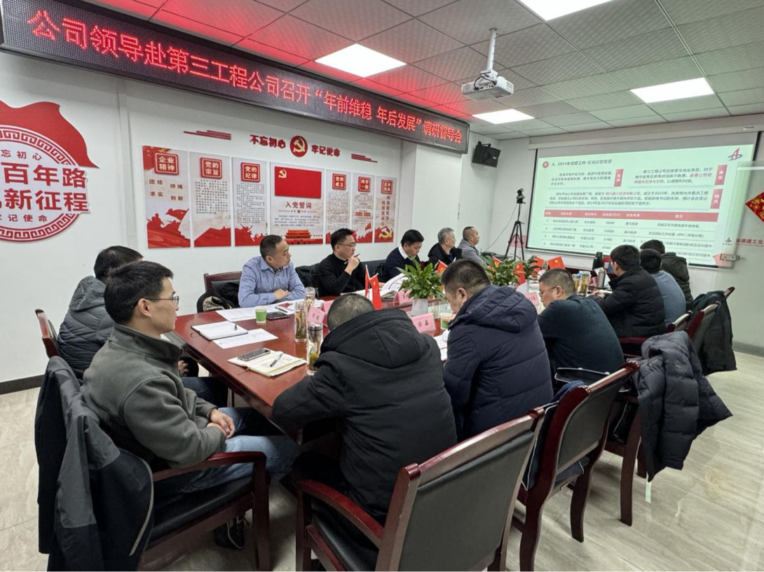 1月20日,建工交航黨委副書記、總經(jīng)理李登祥一行赴第三工程公司和第四工程公司召開“年前維穩(wěn) 年后發(fā)展”調(diào)研督導(dǎo)會。