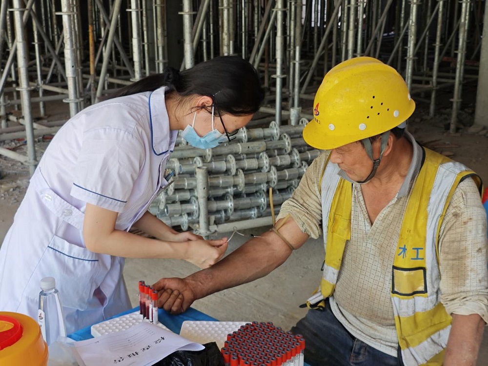 為落實安全生產(chǎn)工作要求,切實保障一線工人的身體健康,5月17日下午,商機廠租賃住房項目部開展了以“事情關(guān)愛農(nóng)民工,健康體檢暖人心”為主題的體檢活動,邀請醫(yī)護人員走進工地,為現(xiàn)場工人進行一次全面、免費的健康檢查,用實際行動傳遞溫暖。