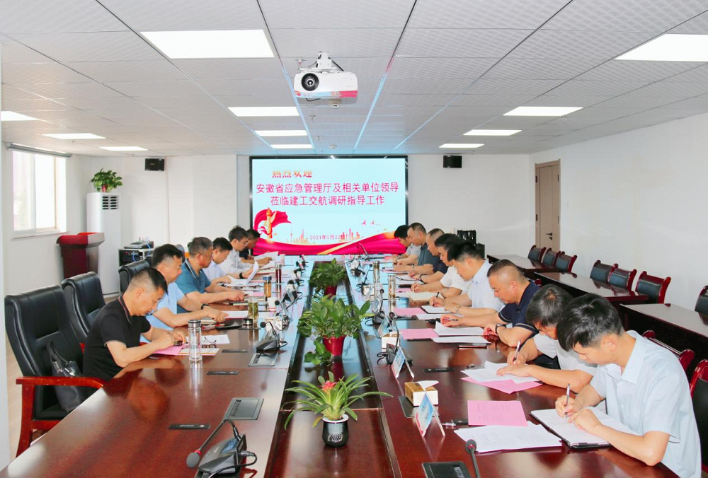 安徽省應(yīng)急管理廳救援協(xié)調(diào)處三級調(diào)研員沈磊,合肥市應(yīng)急管理局副局長史向陽,合肥市應(yīng)急管理局救援協(xié)調(diào)處處長王華波,肥西縣應(yīng)急管理局總工程師湯道勝,肥西縣應(yīng)急管理局指揮中心負責人姚甜;建工交航黨委委員、副總經(jīng)理、工會主席王黎明,黨委委員、副總經(jīng)理邢磊及相關(guān)單位負責人參加交流調(diào)研。