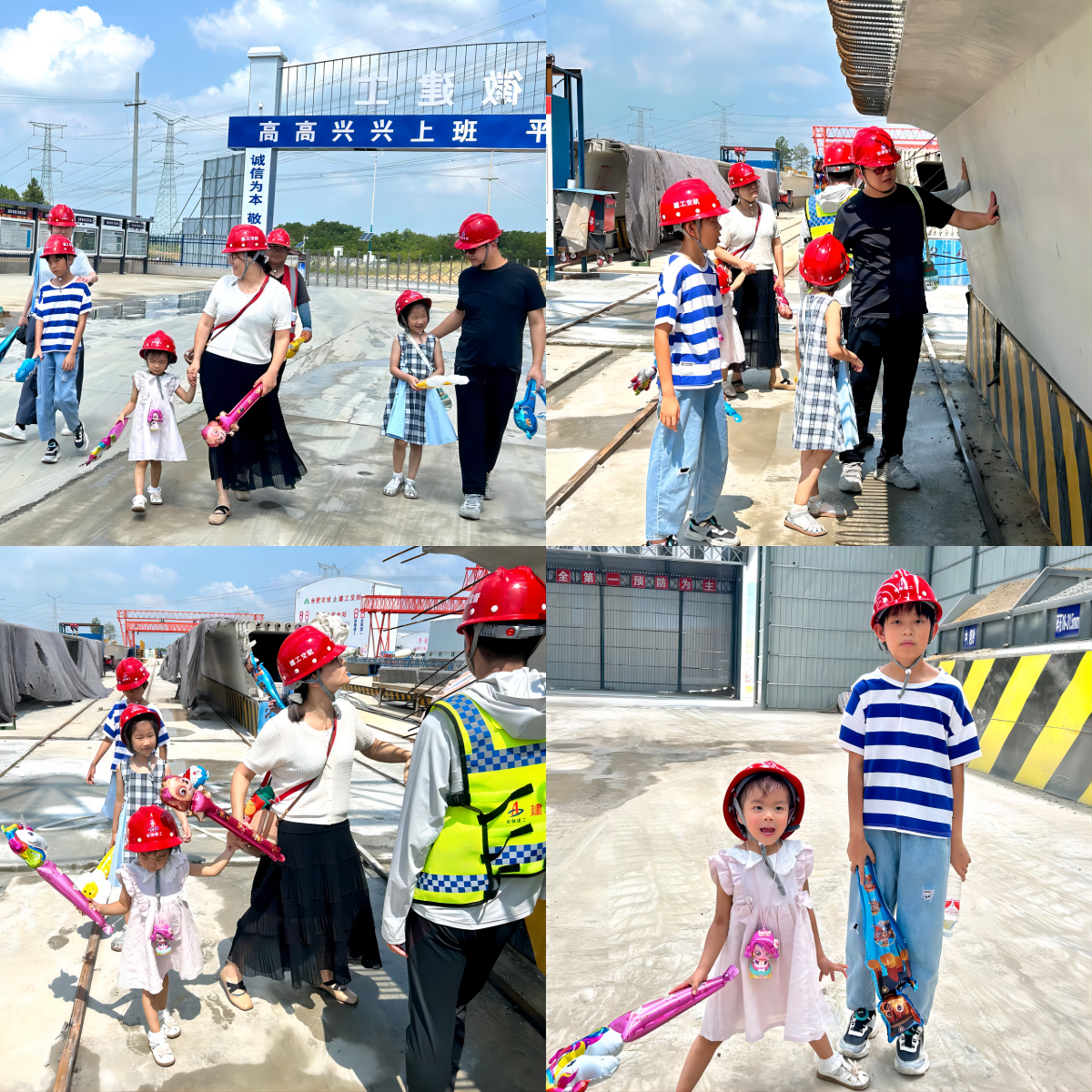 在父母的帶領(lǐng)下,“小候鳥”們戴上安全帽走進了“工地大課堂”,實地參觀了S18寧合高速04標(biāo)項目施工現(xiàn)場、辦公區(qū)與生活區(qū),“零距離”感受了父母的工作環(huán)境,深刻認識到了工作的艱辛不易,并為他們扎根一線、艱苦奮斗而感到驕傲與自豪。