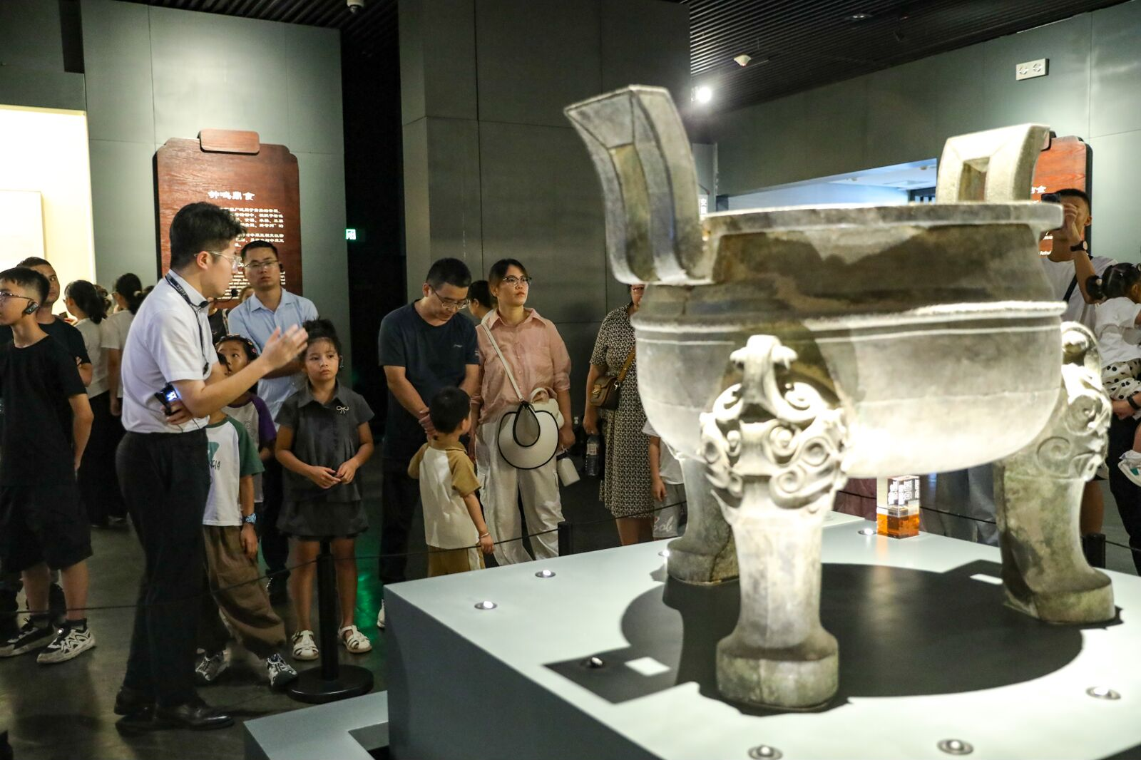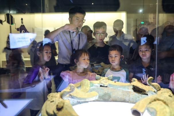 飯后,“小候鳥(niǎo)”們熱情不減,快樂(lè)奔赴安徽省博物院(新館)參觀,緊緊跟隨者講解員的步伐,遨游在古皖大地的歷史長(zhǎng)河之中。商周青銅器、漢代畫(huà)像石、古代陶瓷器等一件件歷史文物、一幀幀歷史畫(huà)卷,訴說(shuō)著過(guò)往的輝煌與滄桑,且館內(nèi)采用高科技多媒體與游客互動(dòng),陳列的巖石標(biāo)本、古生物化石令人感到震撼,充分激發(fā)了小朋友熱愛(ài)家鄉(xiāng)、探索科學(xué)的熱情。