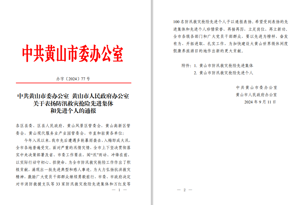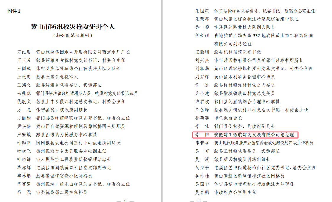 近日,黃山市委、市政府辦公室發(fā)布“關(guān)于表揚(yáng)防汛救災(zāi)搶險(xiǎn)先進(jìn)集體和先進(jìn)個(gè)人的通報(bào)”,建工交航皖南分公司李陽同志作為黃山市唯一施工企業(yè)代表榮獲先進(jìn)個(gè)人表彰,安徽建工徽航建設(shè)發(fā)展有限公司是唯一一個(gè)施工企業(yè)獲此殊榮。