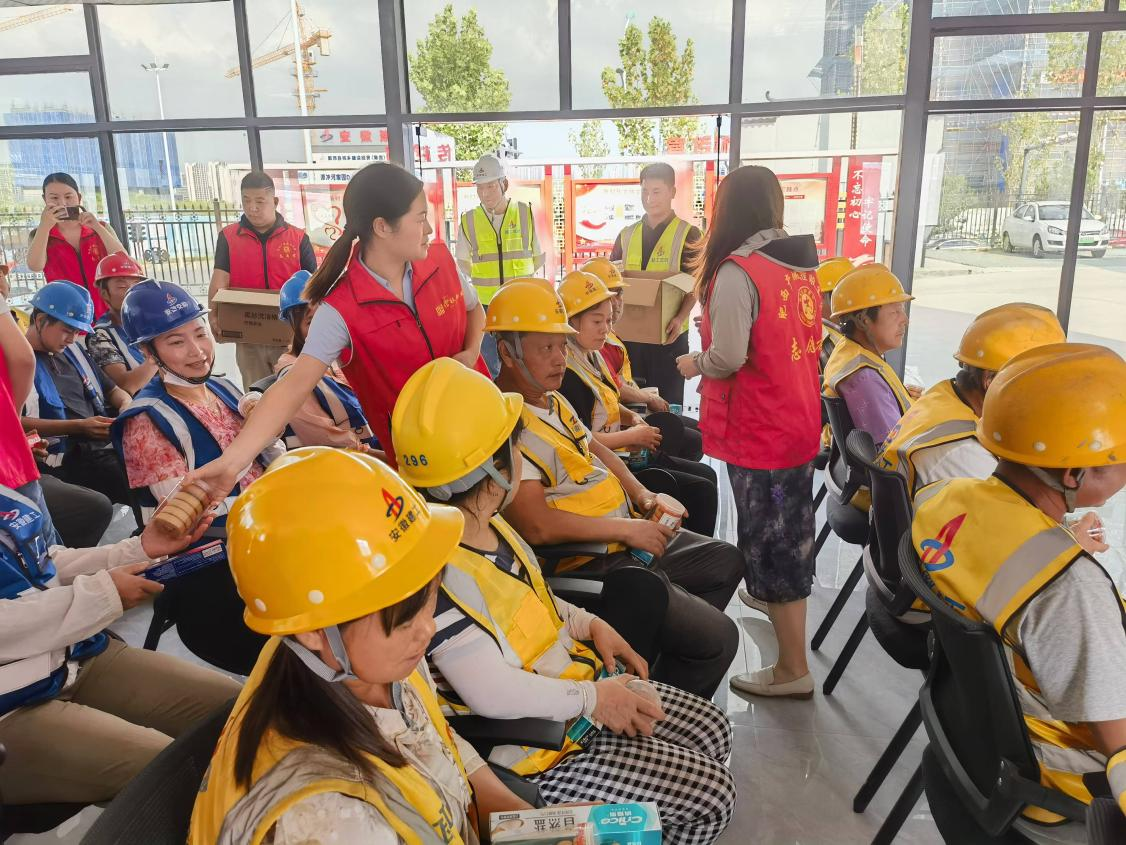 活動(dòng)中,志愿者組織好現(xiàn)場(chǎng)的工友代表進(jìn)行集中宣講,將黨的二十屆三中全會(huì)精神與工友的工作生活結(jié)合起來(lái),用通俗易懂的語(yǔ)言講述教育、醫(yī)療等惠民政策,讓黨的聲音深入百姓心中。志愿者還對(duì)在場(chǎng)工友開(kāi)展安全教育宣講,重點(diǎn)對(duì)消防安全、用電安全等內(nèi)容進(jìn)行細(xì)致講解,對(duì)高處作業(yè)和交通安全等方面進(jìn)行宣傳培訓(xùn),使工友了解作業(yè)中正確的防護(hù)措施,有效提高了工友的安全生產(chǎn)防范意識(shí)。隨后,志愿者將一份份精心準(zhǔn)備的中秋慰問(wèn)品送到工友手中,向他們表達(dá)節(jié)日的慰問(wèn),并叮囑大家務(wù)必保障自身安全,確保項(xiàng)目安全生產(chǎn)、有序施工。