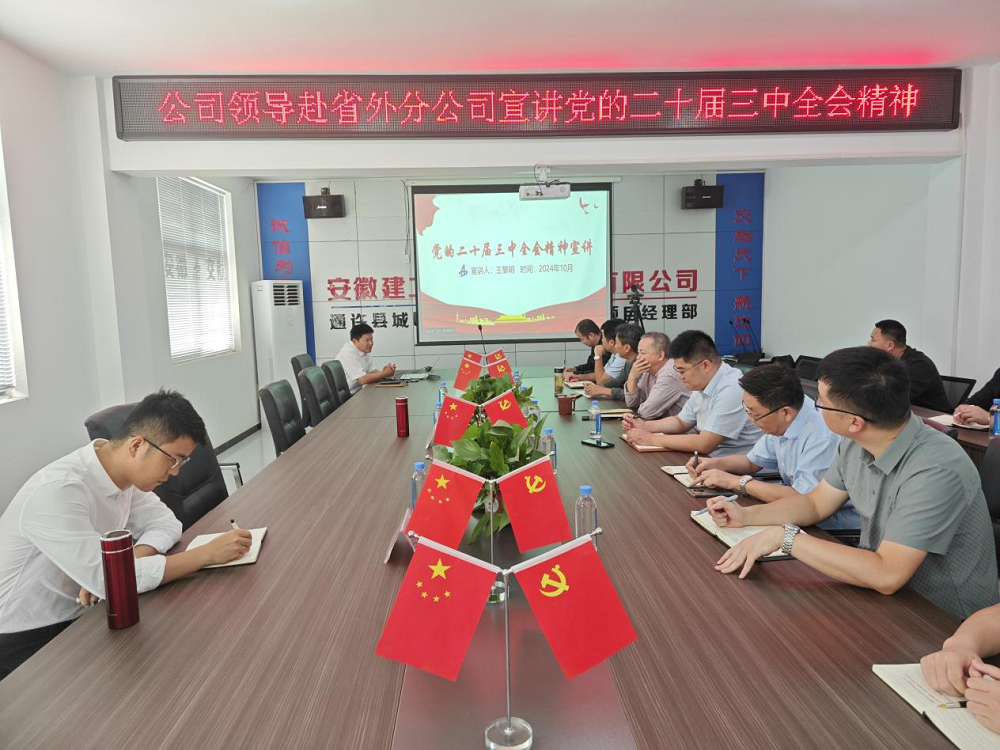 為深入學(xué)習(xí)黨的二十屆三中全會精神,營造奮進(jìn)新征程的良好氛圍,確保讓黨的創(chuàng)新理論在基層生根發(fā)芽,10月11日下午,公司黨委委員、副總經(jīng)理、工會主席王黎明赴省外分公司開展黨的二十屆三中全會精神宣講報告會。