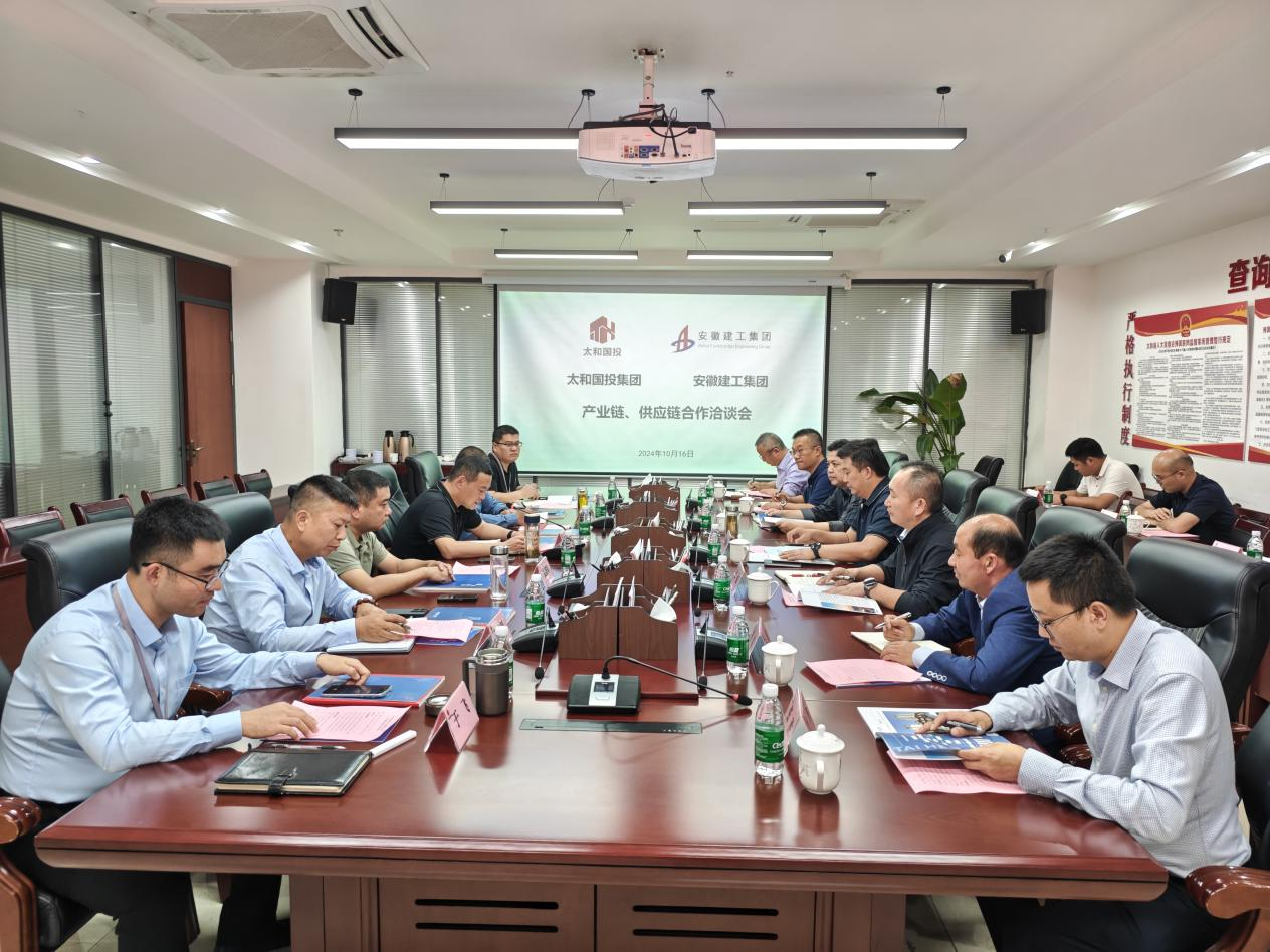 10月16日,公司黨委副書記、總經(jīng)理、阜陽區(qū)域鏈長李登祥,率安徽建工路港、安徽建工商貿(mào)、安徽建工建材等成員單位赴太和縣國有資產(chǎn)投資控股集團(tuán)有限公司開展產(chǎn)業(yè)鏈、供應(yīng)鏈合作洽談會。