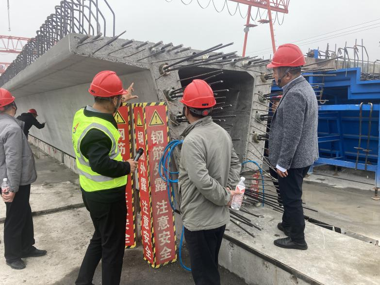 參加人員先后觀摩了建工建投集團淮桐高速05標項目拌合站、預制梁場、鋼筋加工區(qū)、大跨度橋梁施工段、路基、互通區(qū)等主要施工區(qū)域。在項目部工作人員的引導下,對項目不同區(qū)域,如拌合站、預制梁場、高速路床和互通區(qū)進行觀摩。詳細聽取了項目負責人及項目現(xiàn)場管理人員關于項目整體概況、項目管理、安全文明創(chuàng)建、質量管控、施工難點等多方面的介紹。大家圍繞所看、所思、所想,邊看邊交流,為大家今后工作及項目管理提供了寶貴的經驗和借鑒案例。