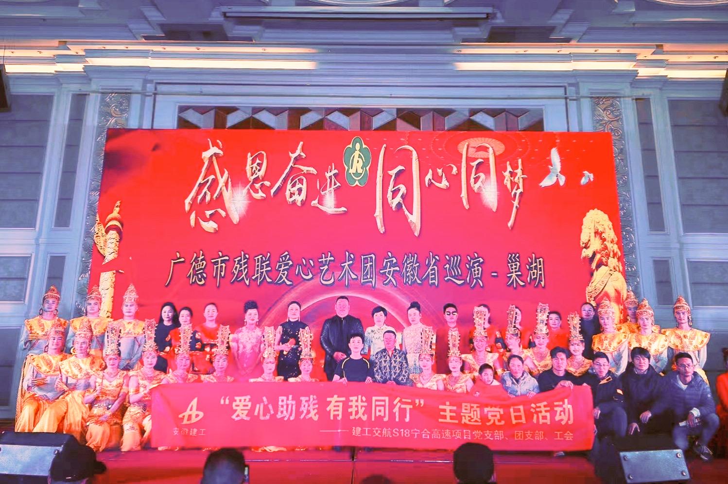 為進一步弘揚中華民族扶弱助殘的傳統(tǒng)美德,營造關(guān)心幫助殘疾人等特殊群體的良好氛圍,12月14日S18寧合高速項目黨支部開展“愛心助殘 有我同行”主題黨日活動,組織全體黨員集中觀看廣德市殘聯(lián)愛心藝術(shù)團的演出。
