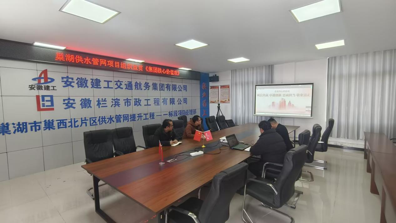巢湖供水管道網(wǎng)項(xiàng)目召開專題會(huì)議,集中學(xué)習(xí)了集團(tuán)發(fā)布的《關(guān)于開展安徽建工集團(tuán)核心價(jià)值觀學(xué)習(xí)宣貫的通知》,鮮明解讀了“誠(chéng)信共贏 卓越創(chuàng)新 忠誠(chéng)擔(dān)當(dāng) 敬業(yè)清正”核心要義。