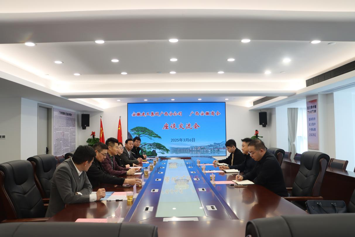 近日,安徽建工集團廣西分公司負責人孫珂應邀率隊到廣西安徽商會拜訪,與會長李傳德等座談交流,共商合作機遇。