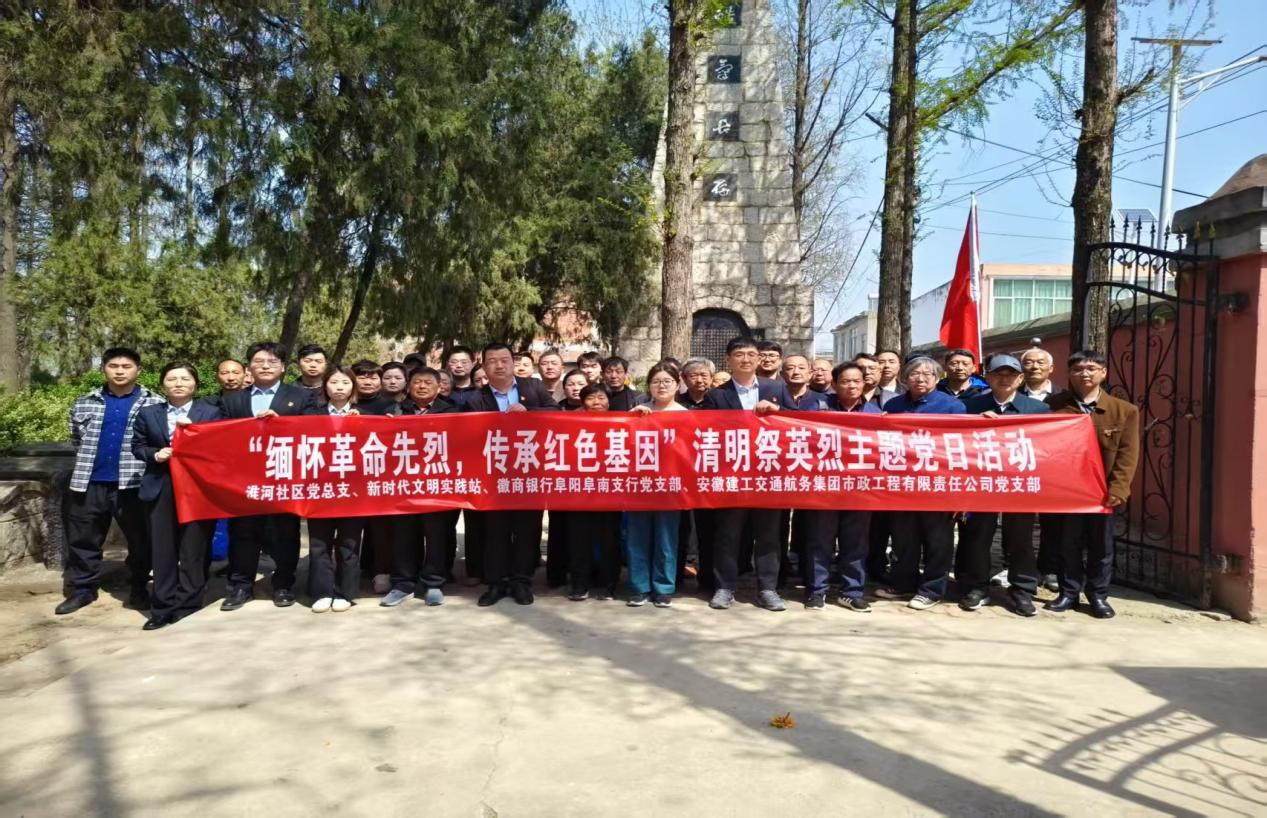 近日,市政工程有限責(zé)任公司黨支部聯(lián)合淮河社區(qū)黨總支、徽商銀行阜陽(yáng)阜南支行黨支部開展“緬懷革命先烈,傳承紅色基因”清明祭英烈主題黨日活動(dòng)。
