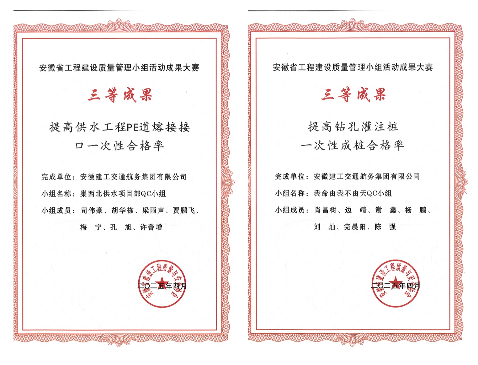 近日,2025 年安徽省工程建設(shè) QC 小組成果大賽評選結(jié)果揭曉。建工交航斬獲 2 項省級一等獎、9項省級二等獎、14項省級三等獎。