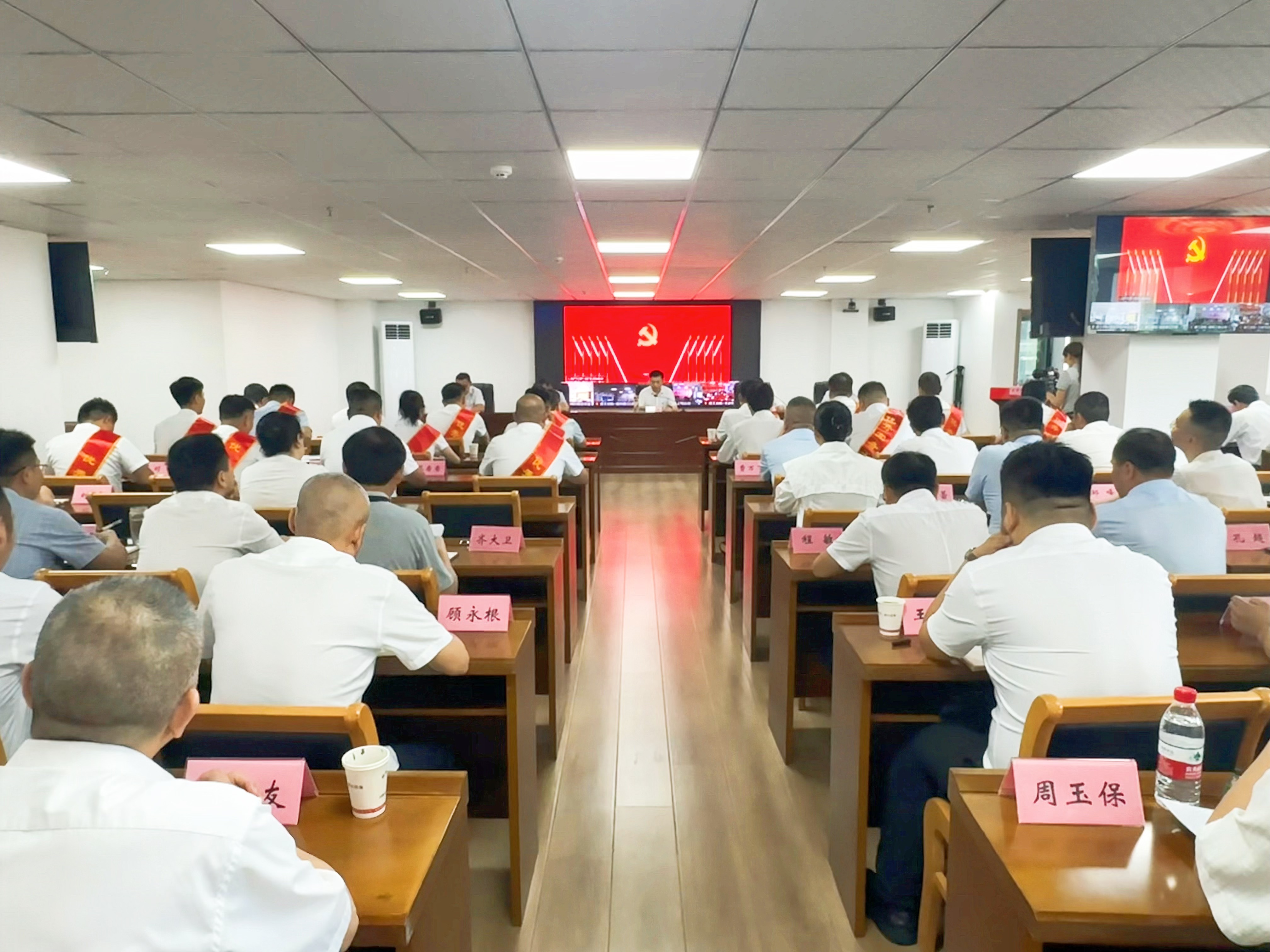 會(huì)議以現(xiàn)場(chǎng)加視頻形式召開(kāi),公司全體黨員、團(tuán)員青年、入黨積極分子參會(huì)。